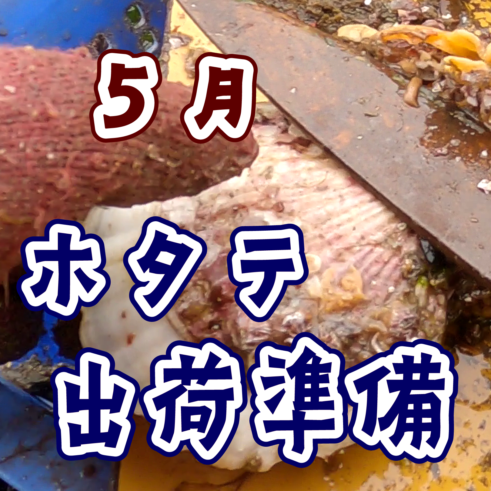 ホタテの水揚げは、まずホタテをきれいにすることからはじまります。船上で作業します。風や雨の時には作業しません